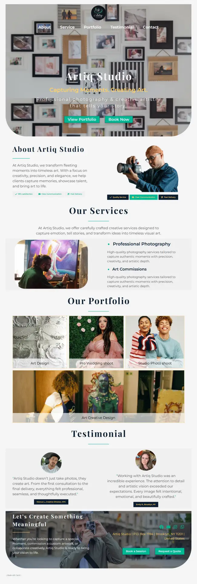A visually rich portfolio website crafted for artists and photographers to present their work and strengthen their online presence.